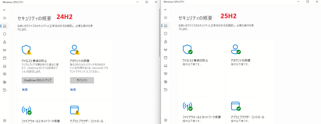 本記事は 2025年 の Windows 11 大型バージョンである 25H2 が一般公開されたため、その適用、あとは24H2との比較の記事になります。